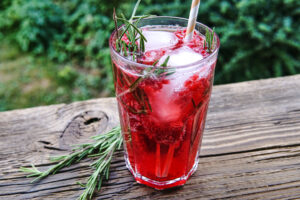 Die Himbeeren waschen und vorsichtig trocken schütteln. Dasselbe mit dem Rosmarin machen. 200g Himbeeren auf 4 Gläser verteilen und mit einem Stössel im Glas andrücken. So kommen wir an den herrlichen Saft. Die Rosmarinstängel ebenfalls auf die 4 Gläser verteilen. Alles mit einem Himbeersaft aufgiessen und dann jeweils einen Teelöffel Zitronensaft in ein Glas geben. Alles umrühren und anschliessend mit Eiswürfel befüllen. Anschliessend mit dem Mineralwasser auffüllen und servieren.