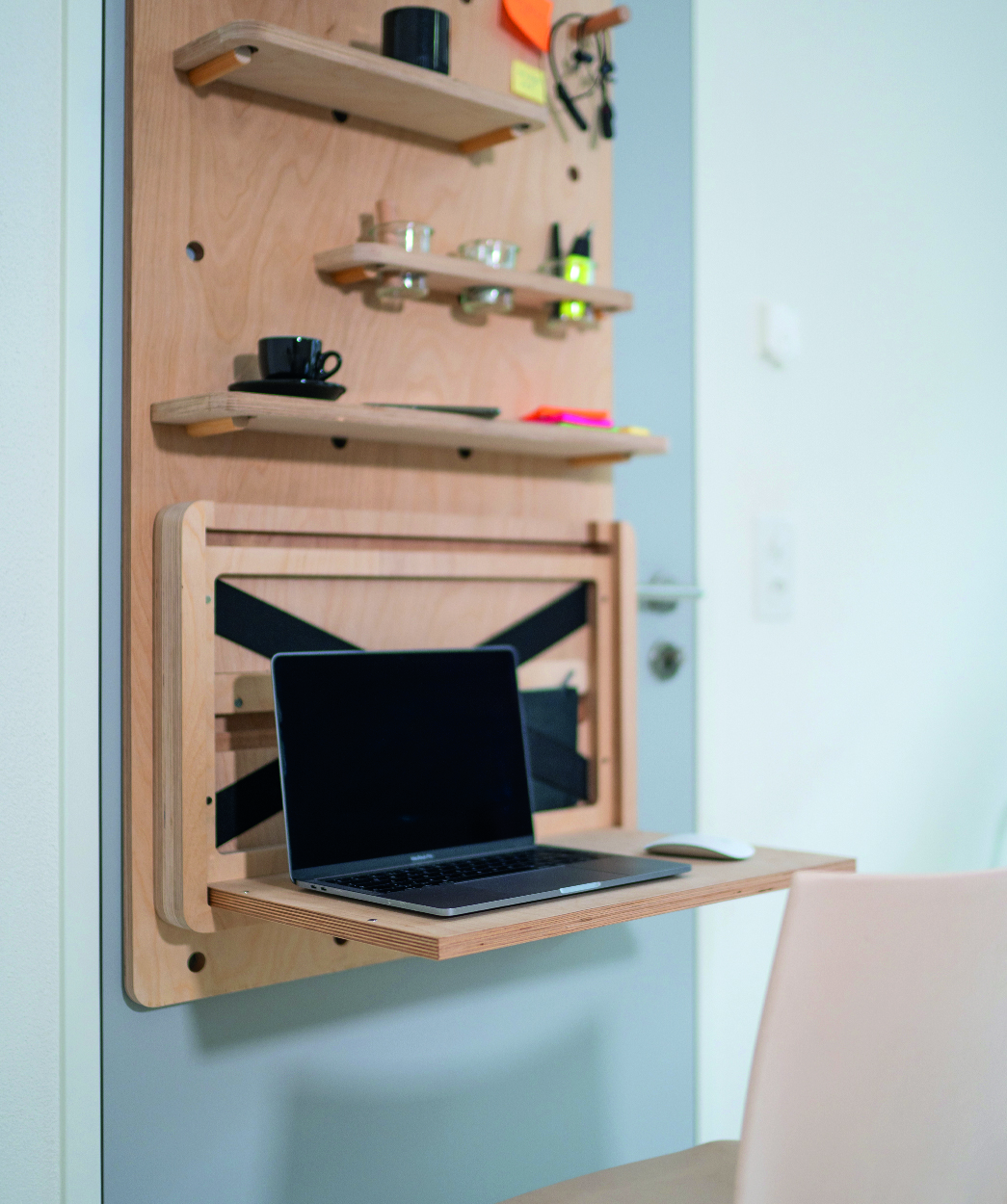 Oder dann einen TÅBLE & HÅNG! Ab jetzt kann dein Micro-Büro überall sein. Mit Hilfe des TÅBLE lässt sich im Handumdrehen ein Arbeitsplatz auf Sitz- oder Stehhöhe einrichten. Egal ob im Schlafzimmer, der Küche oder auf dem WC. Kombiniere den TÅBLE mit dem HÅNG und nutze so das gesamte Potential vom Raum in deinem Zuhause. Türen sind zum Öffnen da und der Platz dahinter wird, um die Funktion zu gewährleisten, freigehalten. Dadurch entsteht ein meist ungenutzter Raum. Hier setzt das HÅNG-System an. Einfach in eine Türe eingehängt, schafft es eine Vielzahl von Nutzungsmöglichkeiten für den «Raum» hinter der Türe.