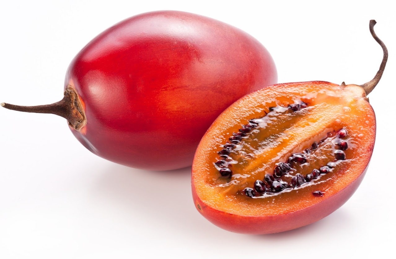 Tamarillo – Die eiförmige Frucht ist im reifen Zustand dunkelrot und hat einen tomatenähnlichen Geschmack. Halbiert und mit Pfeffer und Salz gewürzt, kann man sie wie eine Kiwi mit dem Löffel geniessen, sie ist reich an Vitaminen und Mineralstoffen und einfach köstlich!